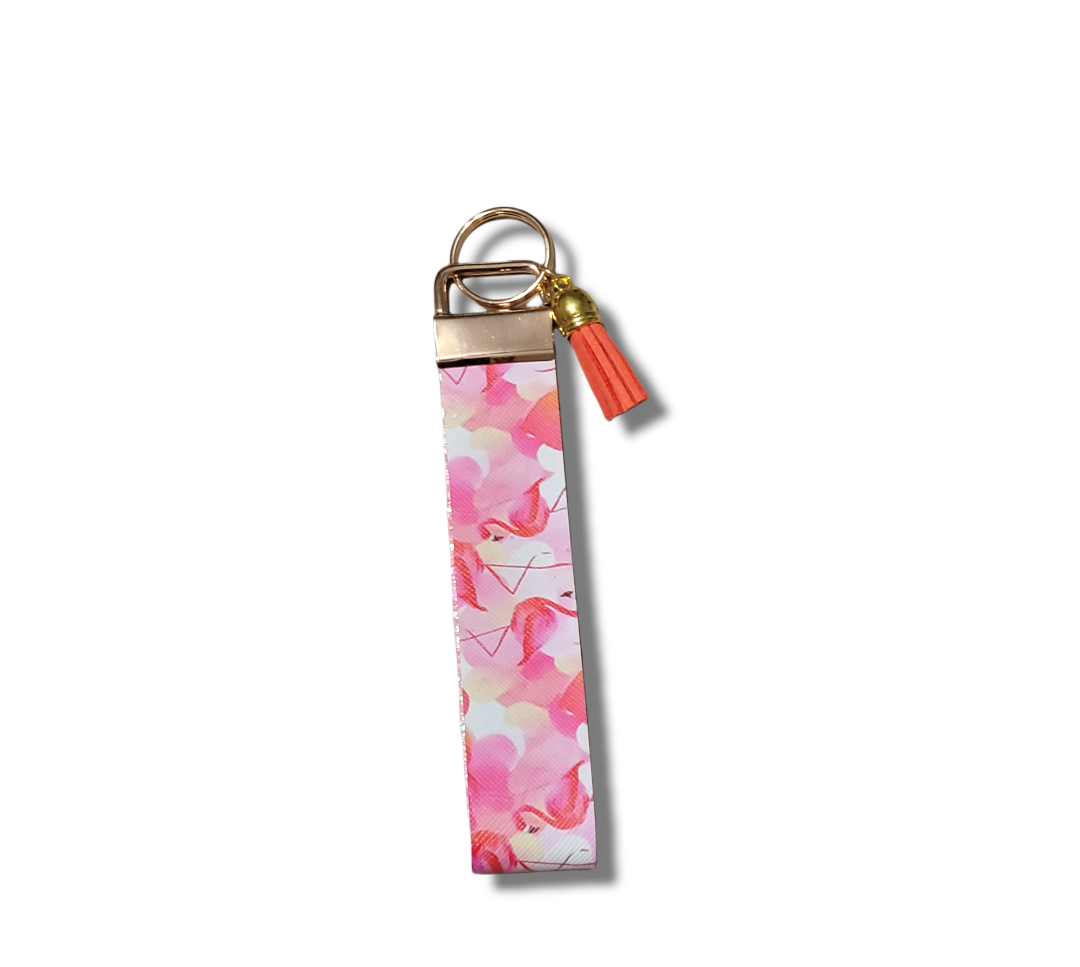 1' wide Fancy Flamingos Vegan Leather Wristlet