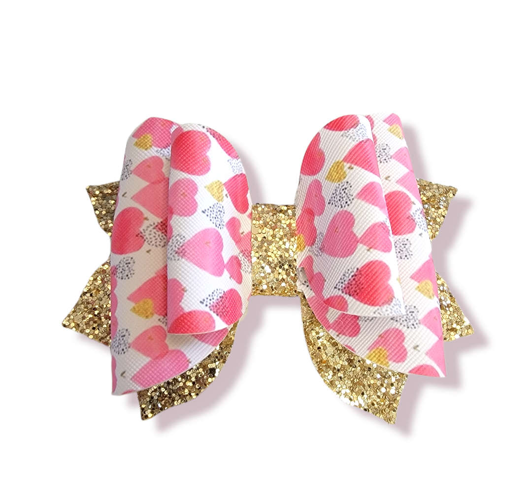 Jasmine Sparkle Pink & Gold Hearts Bow